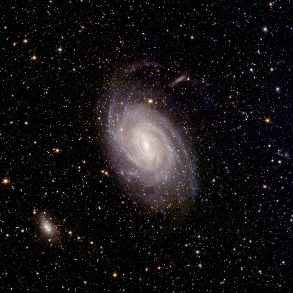 Euclid muestra NGC 6744, un arquetipo del tipo de galaxia que actualmente forma la mayoría de las estrellas del Universo local. El amplio campo de visión de Euclid cubre toda la galaxia, capturando no sólo la estructura espiral en escalas mayores sino también detalles exquisitos en escalas espaciales pequeñas. Esto incluye franjas de polvo con forma de plumas que emergen como "espuelas" de los brazos espirales, que se muestran aquí con una claridad increíble.
