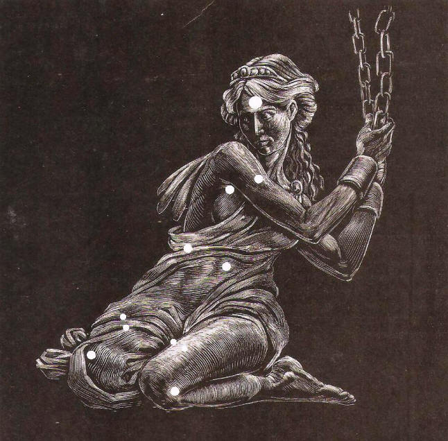 En la historia, fue la diosa Atenea la que conmemoró a la princesa Andrómeda al colocar su imagen entre las estrellas, junto a las constelaciones que representan a su esposo Perseo y su madre Casiopea.