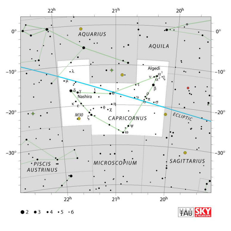 Mapa de la constelación de Capricornio. Crédito: IAU. Sky & Telescope.