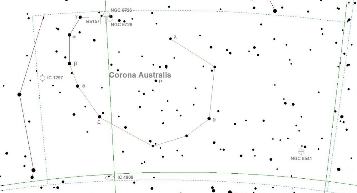 Corona Australis es una pequeña y tenue constelación en el cielo del sur. Su nombre significa "la corona del sur" en latín. Se encuentra entre las constelaciones de Sagitario y Scorpius.
