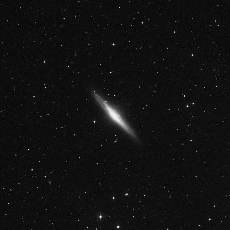 Galaxia espiral intermedia NGC 2776. Crédito: DSS2r. El campo angular de la imagen es equivalente al tamaño de la Luna Llena (0,5° X 0,5°).