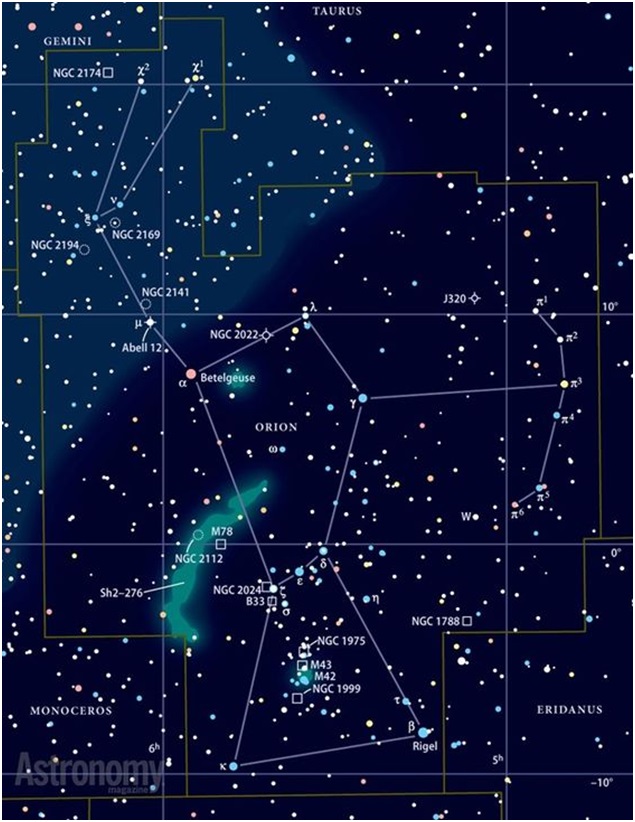 Carta de la constelación de Orión. Crédito: IAU, revista Sky and Telescope.