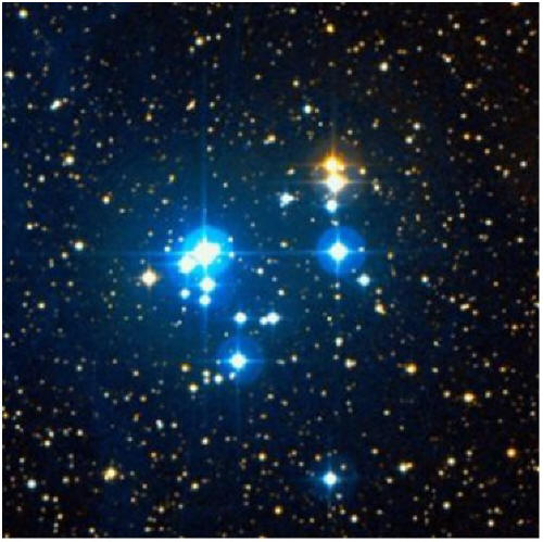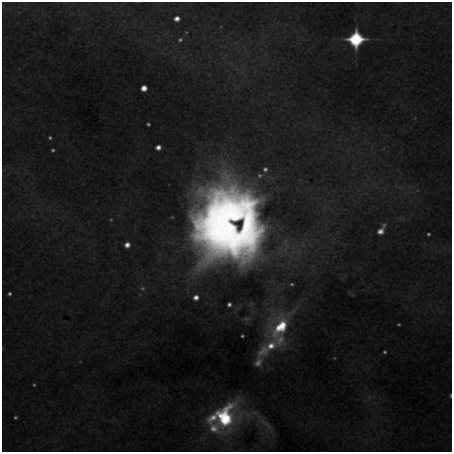 Se trata de una nubosidad y un cúmulo de estrellas en Orión.