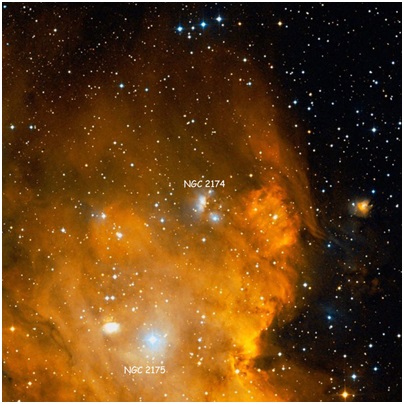 La Nebulosa Cabeza de Mono, NGC 2174, en realidad es un nudo en la nebulosa NGC 2175.