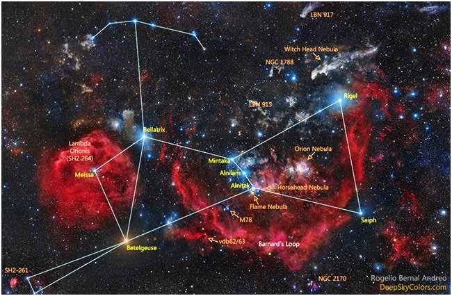 Constelación de Orión. Objetos resaltantes. Crédito: Revista Astronomy.