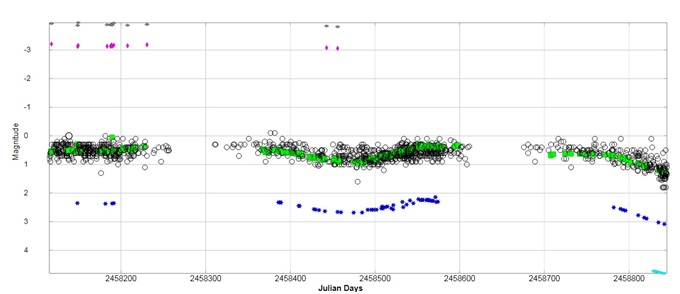 Variación usual en el brillo de la estrella Betelgeuse. Crédito: AAVSO.
