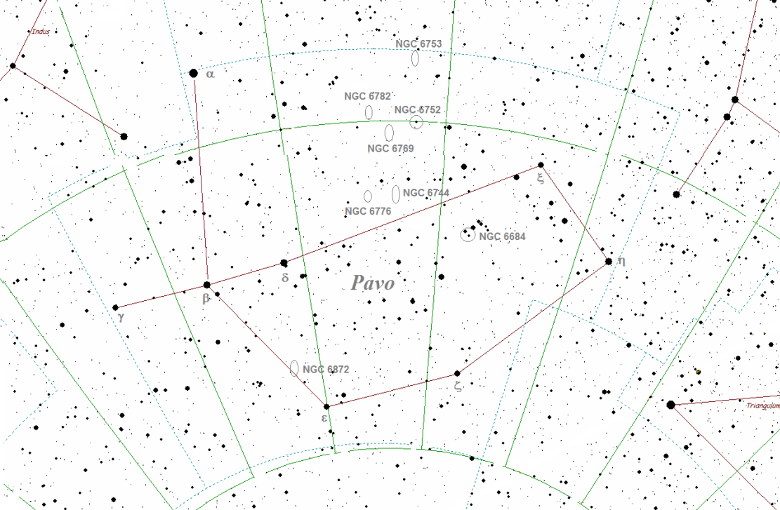 Objetos de espacio profundo en Pavo.