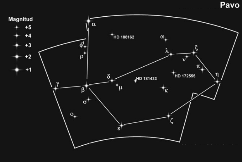 La constelación de Pavo se encuentra en el hemisferio sur celeste. Su nombre significa "pavo real" en latín.