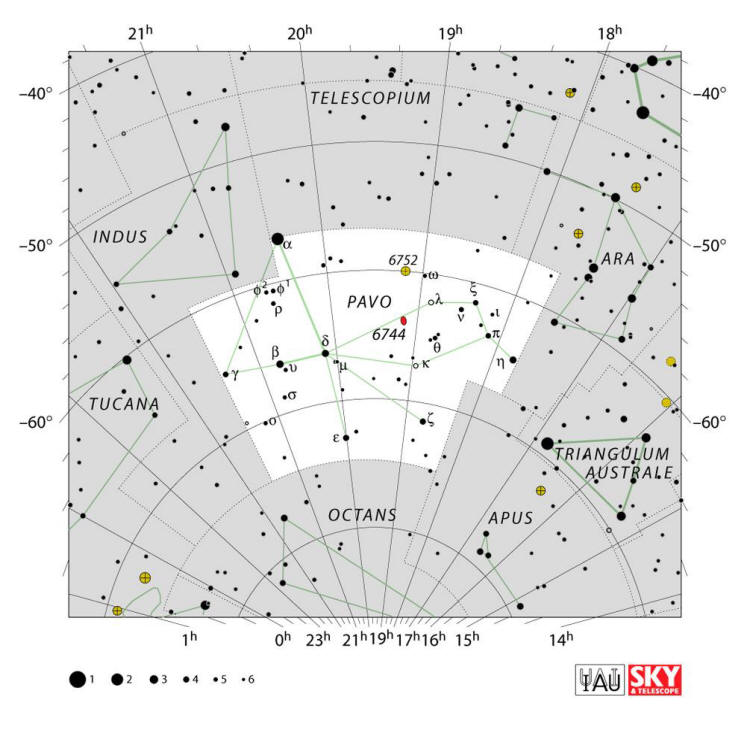 La constelación de Pavo. Crédito: IAU, revista Sky & Telescope.