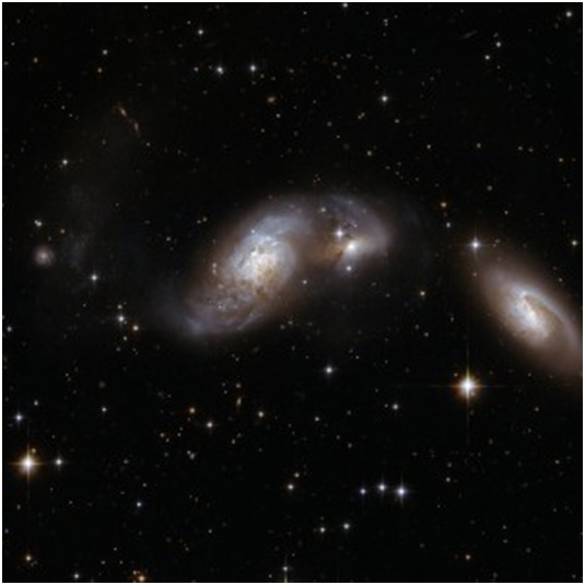 El triplete que interactúa está a unos 250 millones de años luz de distancia.