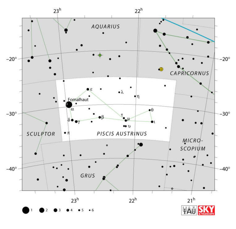 Carta de la constelación Piscis Austrinus. Crédito: IAU, revista Sky and Telescope.