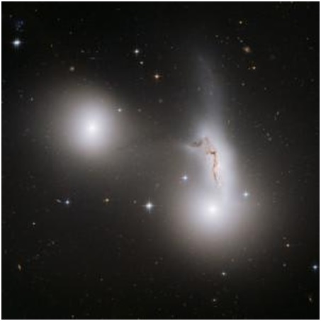NGC 7173 y NGC 7176 parecen ser galaxias elípticas lisas y normales sin mucho gas y polvo.