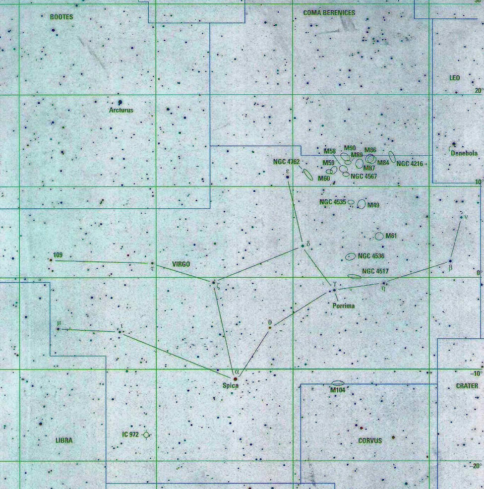 Constelación de Virgo. Carta de la IAU. Revista Sky and Telescope.