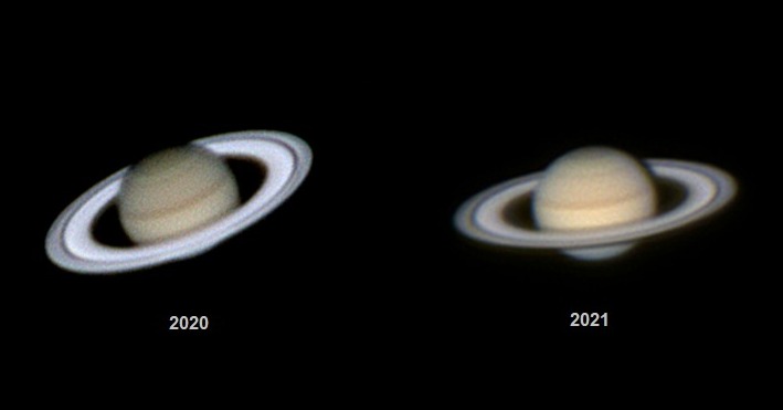 La imagen que adorna la portada de esta semana fue obtenida por Jacinto Artigas, desde Caracas, en el año 2020 y hace apenas dos días, y nos muestra en cambio de la figura de los anillos en un año, vistos desde la Tierra.