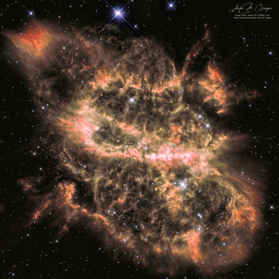¿Por qué esta nebulosa es tan compleja? Cuando una estrella como nuestro Sol se está muriendo, se desprenderá de sus capas externas, generalmente en una forma general simple. A veces, esta forma es una esfera, a veces un lóbulo doble y, a veces, un anillo o una hélice.