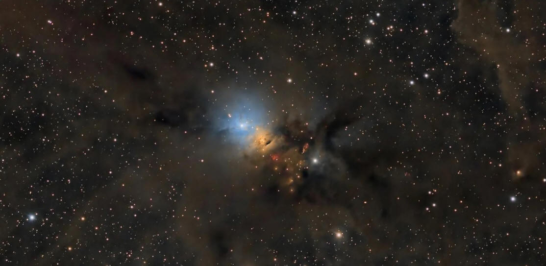 La imagen de nuestra portada es un recorte y acercamiento de la fotografía original en HD, hecho para visualizar con mayor detalle la nube de formación estelar. La imagen original acumula 85 minutos de exposición en un visor Celestron RASA de 11 pulgadas y una cámara a color de un solo disparo.