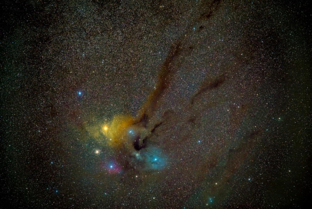 El complejo de nubes Rho Ophiuchi es un gran complejo de nebulosas brillantes y oscuras ubicadas en la constelación de Ofiuco. Se encuentra aproximadamente a 460 años luz de distancia y se centra a 1 grado al sur del sistema estelar Rho Ophiuchi.