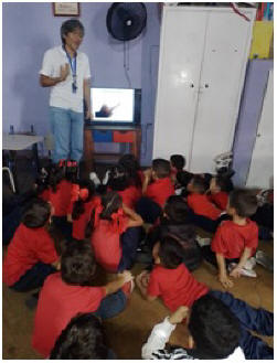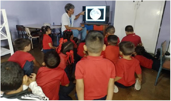 Charla sobre el Sol y la Luna. Dictada en la UENB. "Egidio Montesinos", al curso de 2do. Nivel de Preescolar, 20 estudiantes.