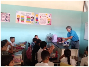 Charla sobre los “Movimientos de la Tierra”, también se incluyó el día y la noche, las estaciones, equinoccios y solsticios, los puntos cardinales, paralelos y meridianos. Dictada en la UENB. "Egidio Montesinos", al curso de 4to. Nivel de Preescolar, 32 estudiantes.