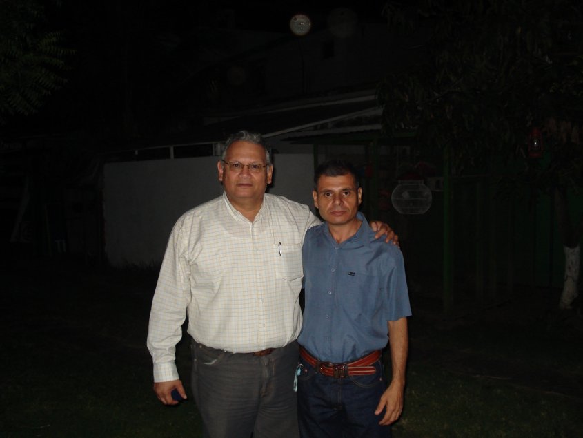 Héctor Suárez y Rafael García. Al fondo, preparativos para el compartir.
