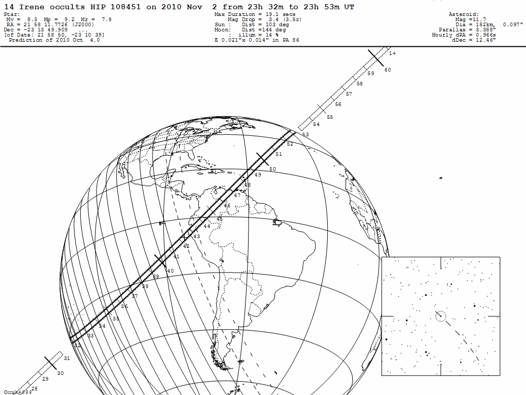 02 - 23:42 UT. El asteroide (14) Irene oculta a HIP 108451 (8m.3).