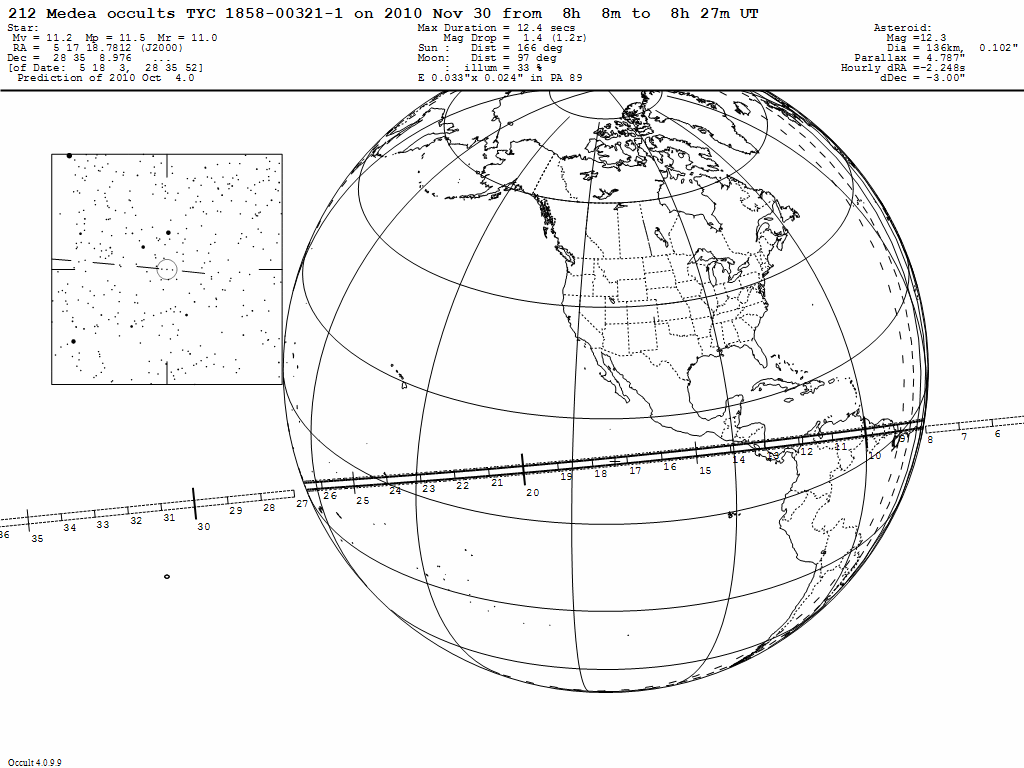 30 - 08:17 UT. El asteroide (212) Medea oculta a TYC 1858-00321-1 (11m.2).