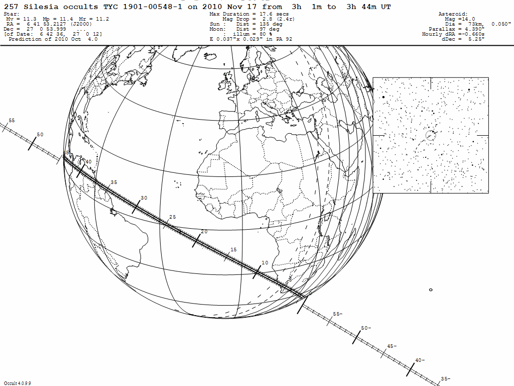 17 - 03:22 UT. El asteroide (257) Silesia oculta a TYC 1901-00548-1 (11m.3).