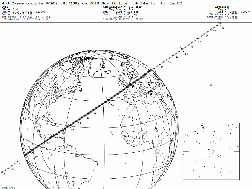 16 - 00:52 UT. El asteroide (403) Cyane oculta a UCAC2 38374982 (12m.0).