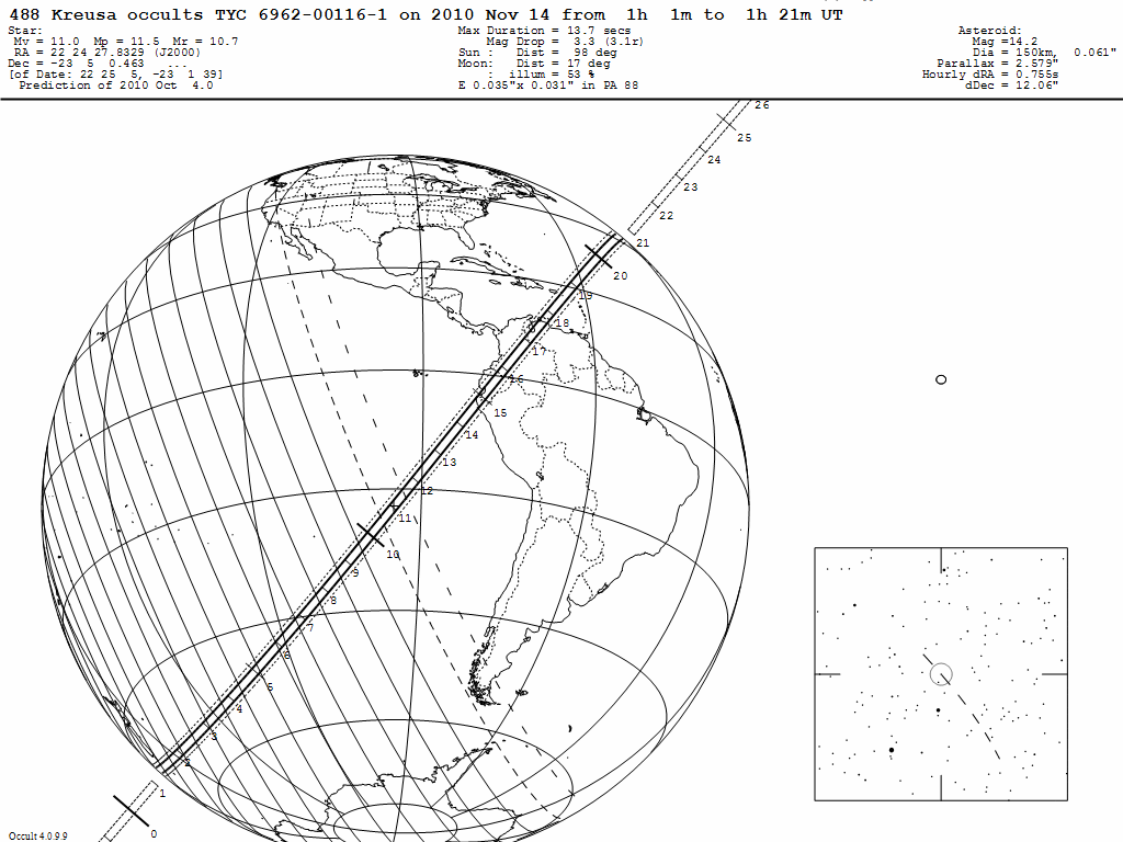 14 - 01:11 UT. El asteroide (488) Kreusa oculta a TYC 6962-00116-1 (11m.0).