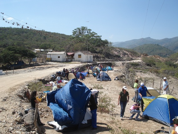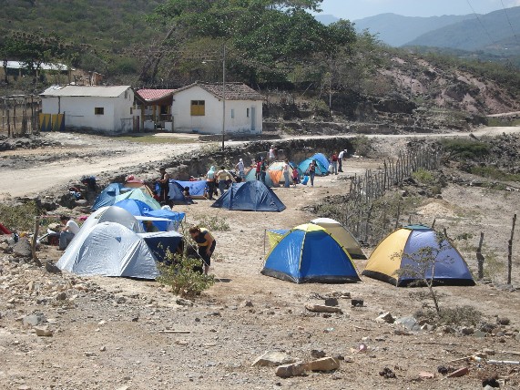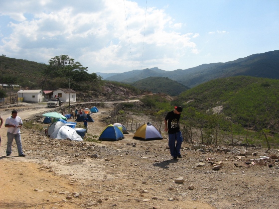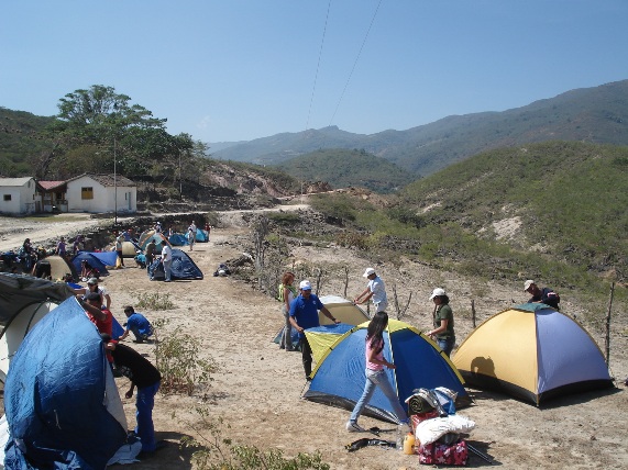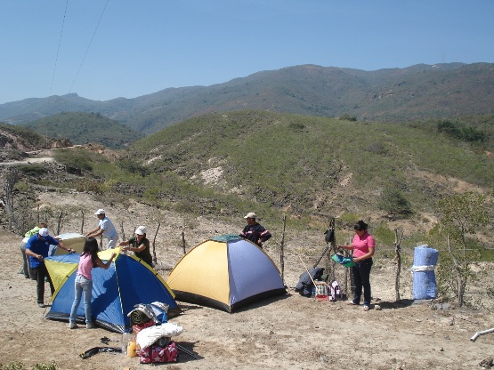 El arribo. Armando las carpas a pleno Sol y a una temperatura inclemente.