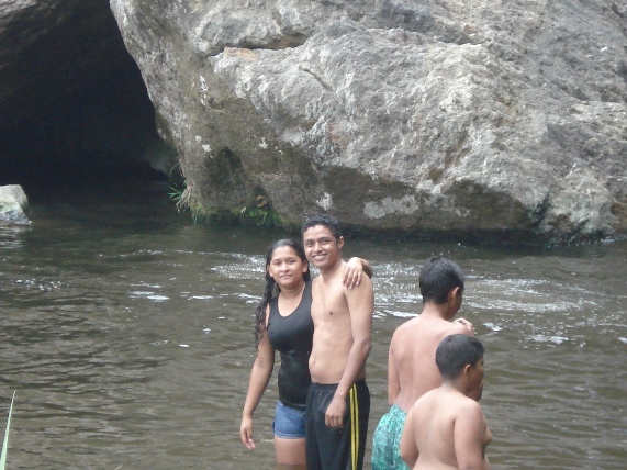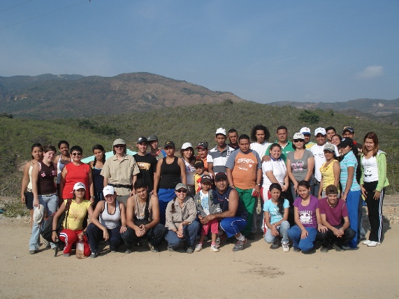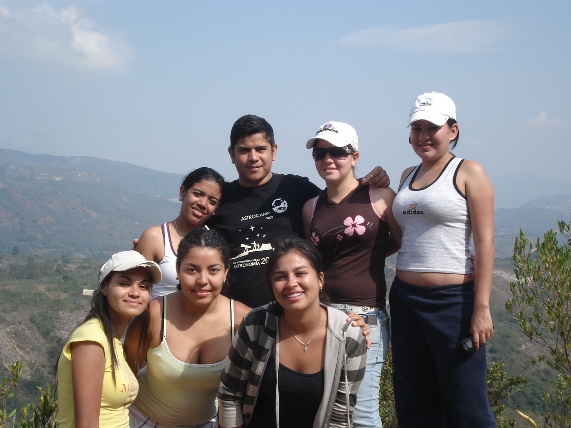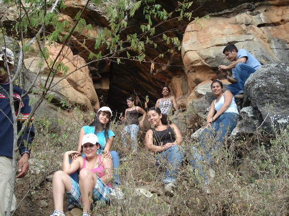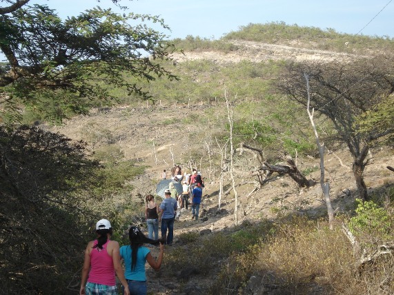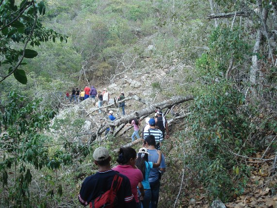 Hacia la cascada del vino. Atrás: Alexandra Perozo, Edwin Freitez, Magdiel Silva y Arelis Cartas.