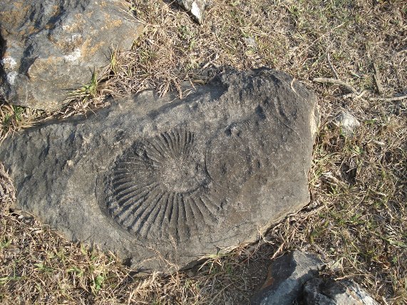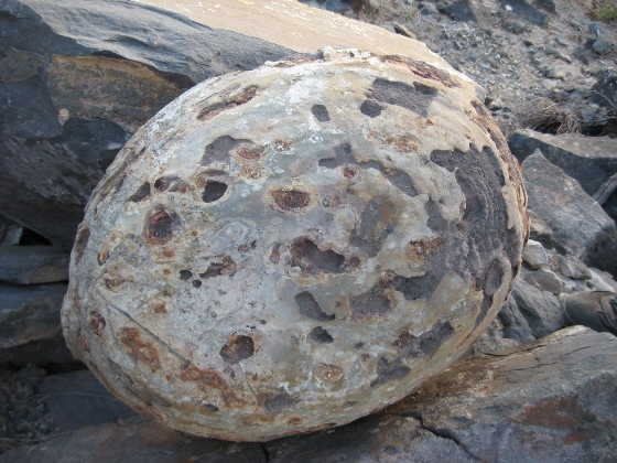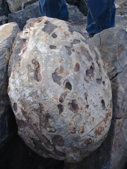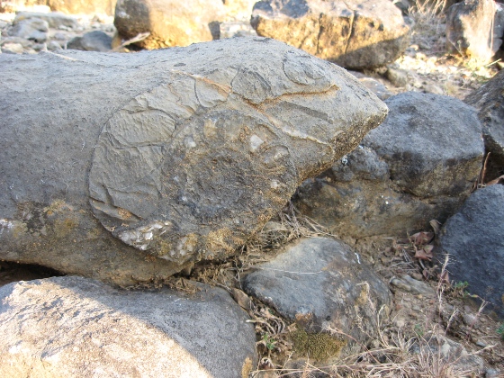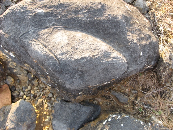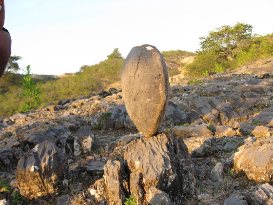 Piedra ovalada puesta en equilibrio por Agustín Velasco. La gran cantidad de piedras de forma ovalada nos hace pensar que se trata de un tipo de fósil, desconocido por nosotros.