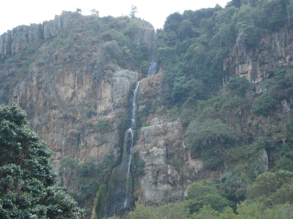 La cascada perdió su color. La poca afluencia de agua no permite desprender los pigmentos de las piedras que le da su color característico.