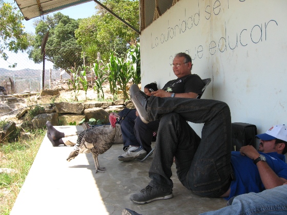 El pavo astrónomo: nos acompañó en toda la jornada. Acá con Jesús Guerrero y Gilbert Reinoso.