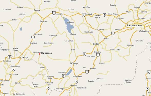 A continuación un mapa con la ubicación de la población de Barbacoas, Estado Lara.