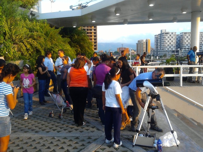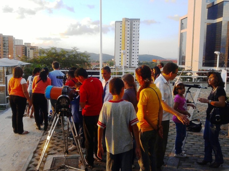 Miembros y amigos de nuestra asociación en las instalaciones de la Flor de Venezuela, Barquisimeto, Estado Lara, haciendo el registro del tránsito de Venus. 05 de junio de 2012.