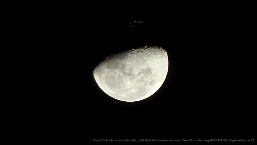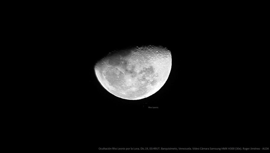 Finalizando el año, la Luna ocultó a una estrella brillante, rho Leonis, evento que fue registrado por Roger Jiménez.