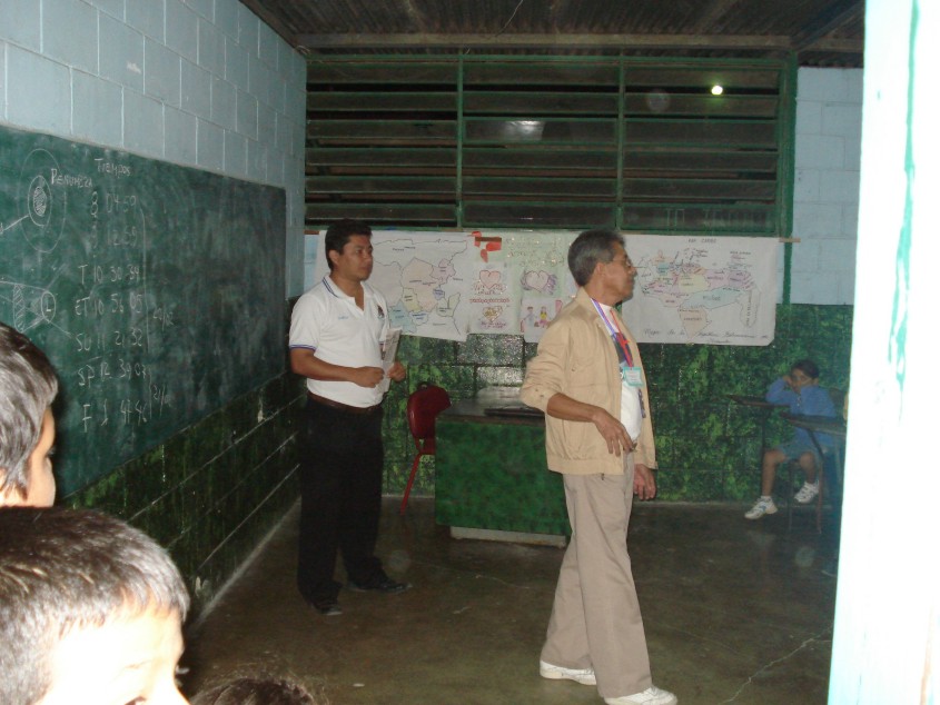 Héctor Suárez y Gilbert Sánchez en la charla introductoria a la comunidad de la escuela María Ledezma.