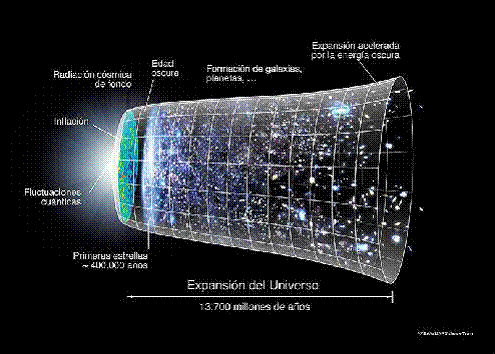 Figura 4. Modelo Cosmológico de consenso. El modelo del Big Bang tras la hiperinflación. Fuente: Wikipedia.