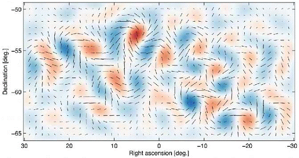 Hubo un gran revuelo en la comunidad internacional, ya que científicos de la colaboración Bicep detectaron lo que podría ser la prueba indirecta del modelo inflacionario antes citado; detectaron al analizar esa luz de microondas lo que técnicamente se conoce como Modos B, un tipo de polarización especial que daría cuenta de las mencionadas ondas, ya que la hiperinflación las aumentaría y serían detectadas (figura 5).