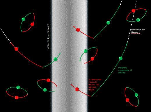 Figura 9. Radiación Hawking en torno al horizonte de sucesos de un agujero negro. Fuente: abcienciade.