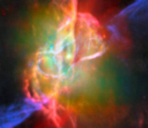 ![]() Impresión artística de los potentes vientos que soplan desde la brillante fuente de rayos X GX13+1. Crédito de la imagen: ESA. |
