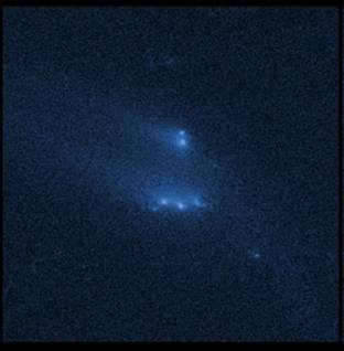 “Keck nos demostró que esto era digno de ser mirado con el telescopio Hubble” dijo Jewitt. Con su resolución superior, las observaciones del Hubble pronto demostraron que eran en realidad diez objetos distintos, cada uno con sus colas de polvo como si fuesen cometas. Los cuatro fragmentos rocosos principales, que son los mayores, tienen cerca de 200 metros de radio.