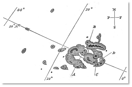 Manchas solares el 1 de septiembre de 1859 dibujadas por Richard Carrington: https://es.wikipedia.org/wiki/Richard_Christopher_Carrington#/media/Archivo:Carrington_Richard_drawing_of_1859_sunspots.jpeg