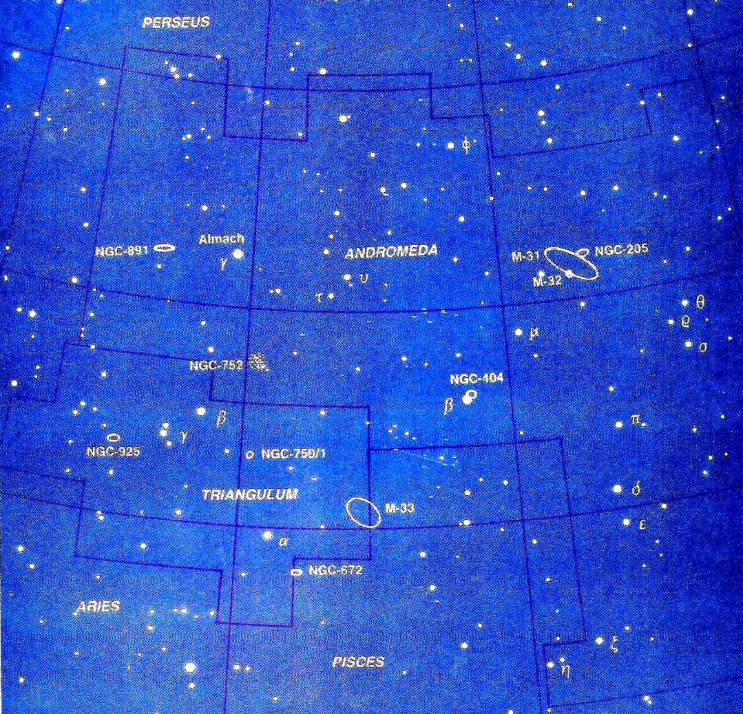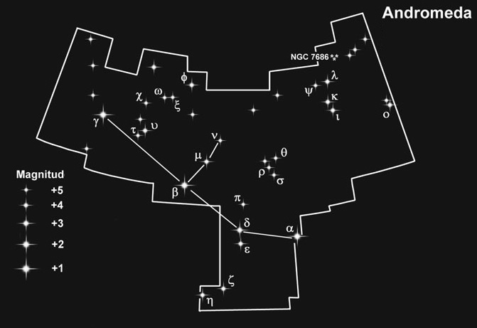 Carta de la constelación Andrómeda. Crédito: IAU, revista Sky and Telescope.