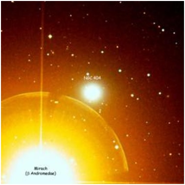 Mirach es una gigante de clase M, unas 85 veces más grande que nuestro Sol, de color rojo brillante, situada a unos 200 años luz de distancia. Es 1.900 veces más luminosa que el Sol y entre 3 – 4 veces más masiva. Tiene una estrella de fusión de hidrógeno de magnitud +14m como compañera.