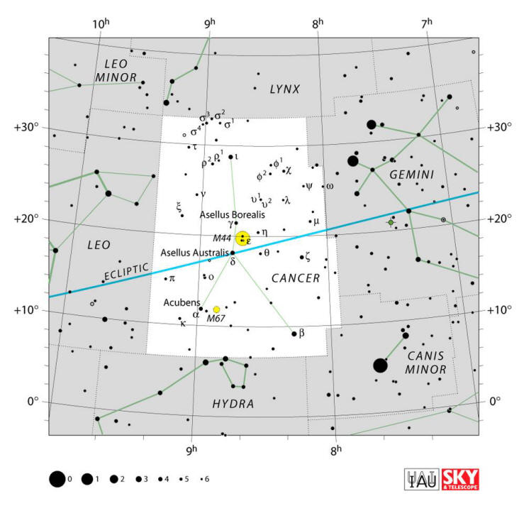 Carta de la constelación Cancer. Crédito: IAU / Revista Sky and Telescope.