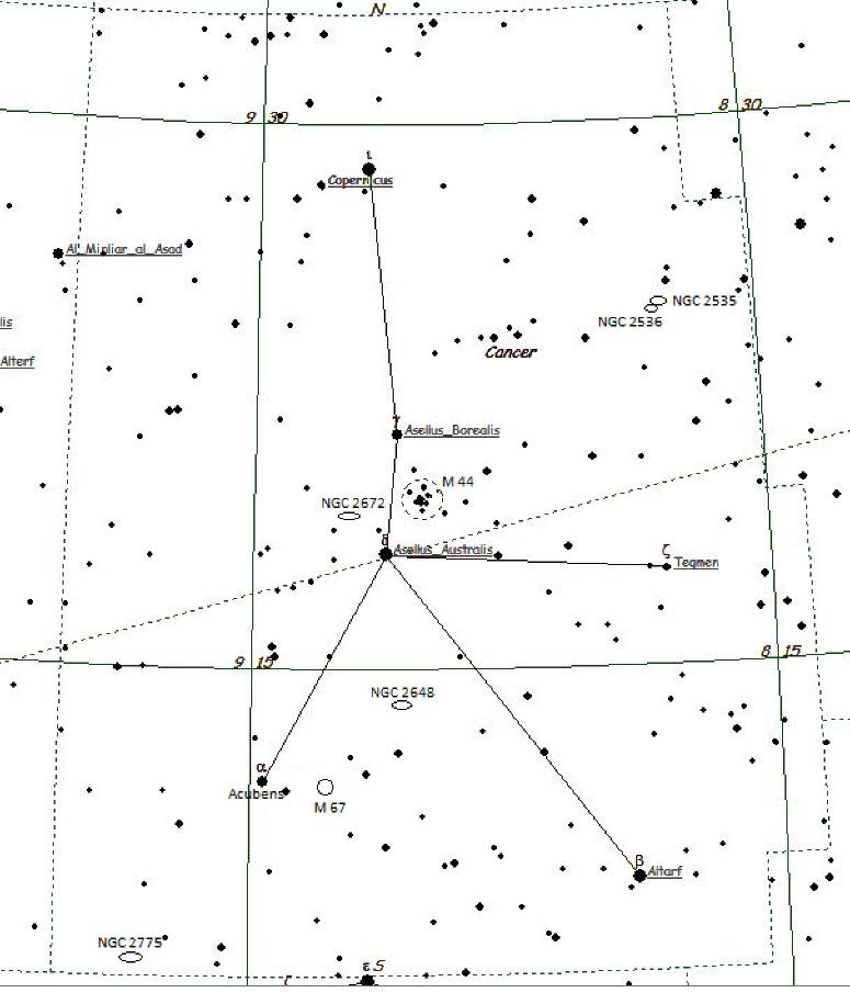 Carta de la constelación Cancer. Crédito: Halo Sky. Edición: Jesús Guerrero, ALDA.