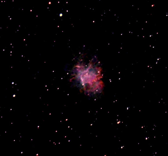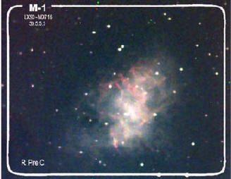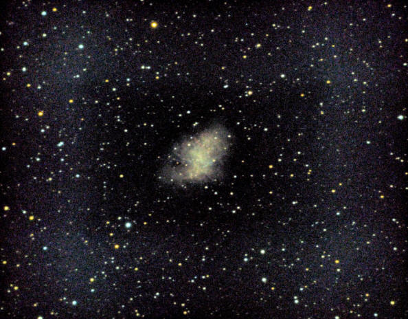 Nebulosa del Cangrejo (M1) en la constelación del Toro. Imagen del 11 de febrero de 2004. Autor: Rafael Pire. |