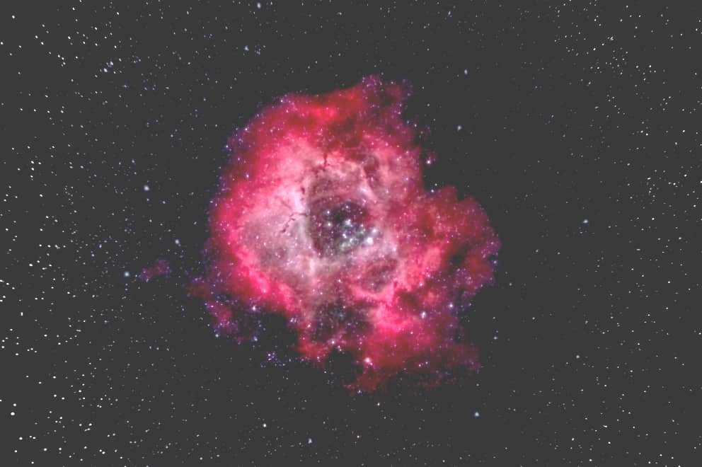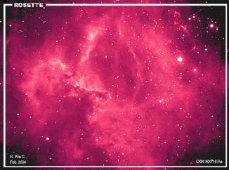 Nebulosa de la Rosetta (NGC 2237), en la constelación del Unicornio. Imagen del 22 de febrero de 2004. Autor: Rafael Pire. |